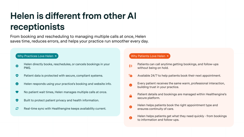 Ultimately, Healthengine’s AI receptionist was the solution this practice manager chose, but Helen wasn’t the first.